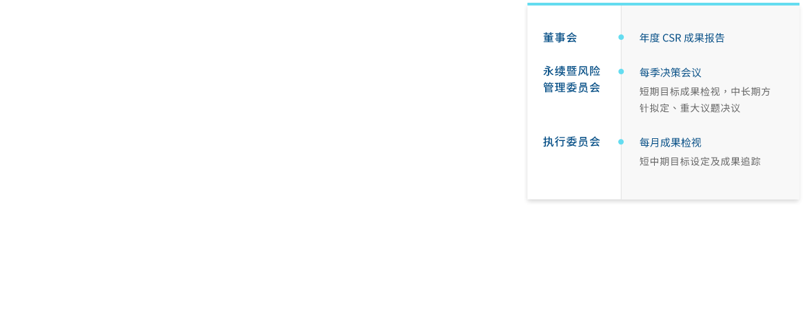 z6尊龙(中国有限公司)-官方网站成立永续委员会(2023年更名可持续暨风险管理委员会),作为公司永续发展运作的最高治理机构,并持续策化推动企业永续转型,透过永续长及永续专责单位,统筹中长期永续发展的策略方向。