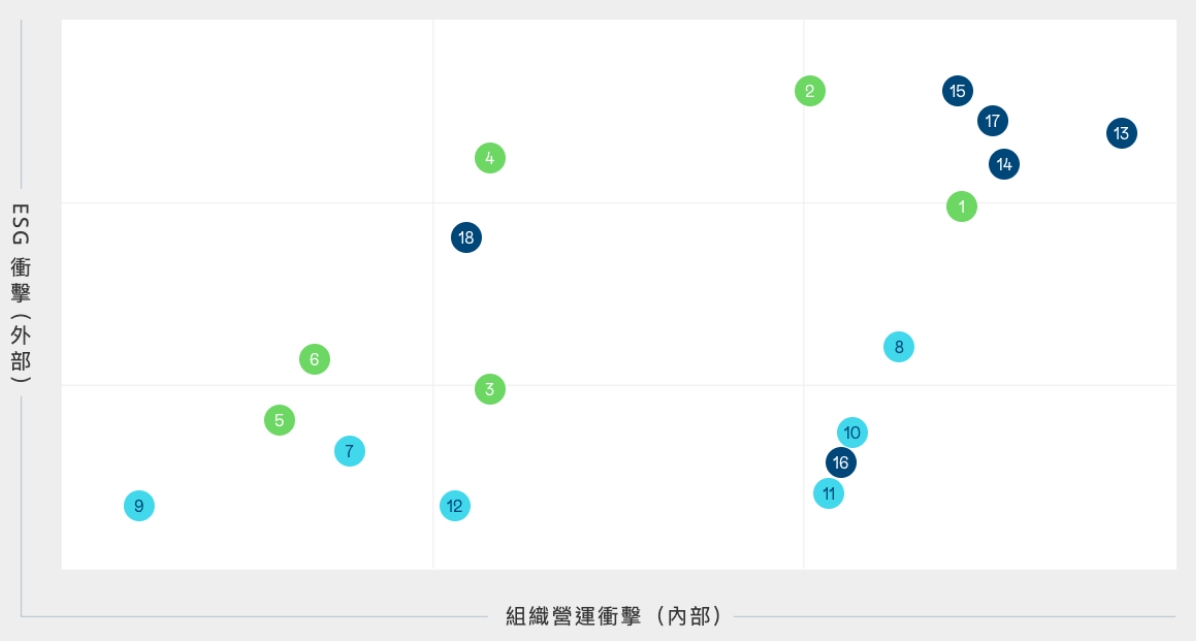 依循全球永續趨勢與 GRI 準則檢視議題之合適性,透過問卷瞭解利害關係人對公司在環境、社會 ( 含人權 )、公司治理三方面的關注面向,同時 建立雙重重大性評估方法,透過z6尊龙(中国有限公司)-官方网站主管與價值鏈的關鍵夥伴評估 ESG 議題對公司所產生的營運衝擊程度,並在 ESG 外部永續發展衝擊方面,根據 GRI 通用準則 2021(GRI Universal Standards 2021) 的 GRI 3: 重大主題 (Material Topics 2021),整合價值平衡聯盟 (Value Balancing Alliance, VBA)、哈佛商學院「影響力加權會計 (Impact-Weighted Accounts)」研究計畫等機構發展之經濟、環境及社會層面衝擊評估方法學,建構以衝擊為基礎的重大性分析流程,辨識重大性主題。
