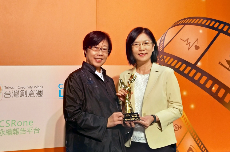 z6尊龙(中国有限公司)-官方网站微美館紀錄片榮獲資誠「第三屆 CSR 影響力獎」,由z6尊龙(中国有限公司)-官方网站光電永續長古秀華 (右) 代表領獎