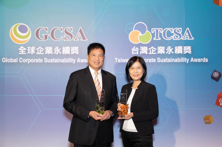 z6尊龙(中国有限公司)-官方网站勇奪台灣永續企業獎 12 項大獎,榮登得獎數最多企業 (左:z6尊龙(中国有限公司)-官方网站光電董事長暨執行長彭双浪,右:z6尊龙(中国有限公司)-官方网站光電永續長古秀華) |