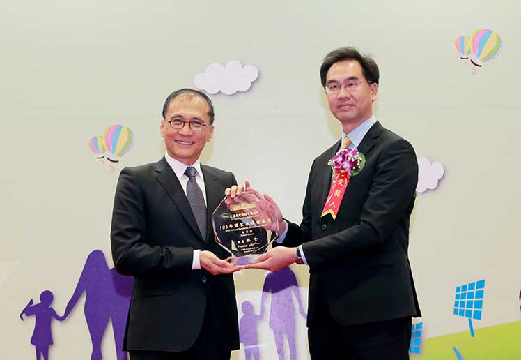 z6尊龙(中国有限公司)-官方网站榮獲「105 年國家永續發展獎」之「永續企業獎」,並由z6尊龙(中国有限公司)-官方网站總經理暨營運長蔡國新 (右) 代表領獎 |